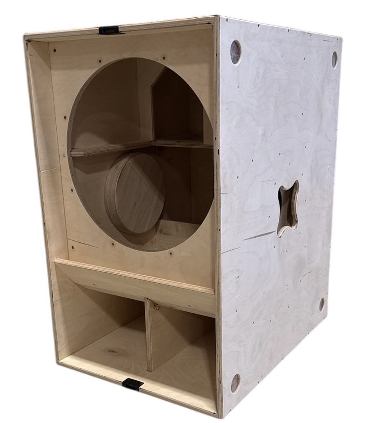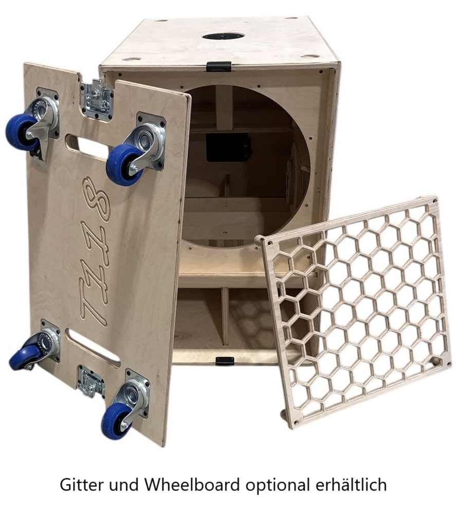 Der Bausatz besteht aus 15mm Multiplex BB/BB. Vorhanden sind Fußfräsungen (gegen Splittern angefast), Flanschfräsungen, und Fräsung für das Anschlussterminal.