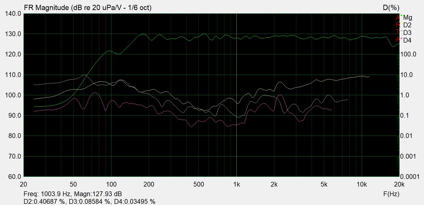 Mit einem Wirkungsgrad von 97dB 1W/1m und der Belastbarkeit von 500W AES / 1000W Peak lassen sich hohe Pegel erzeugen.